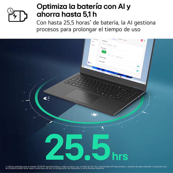 - * Datos de batería probados en los laboratorios internos de LG; los resultados reales pueden variar.